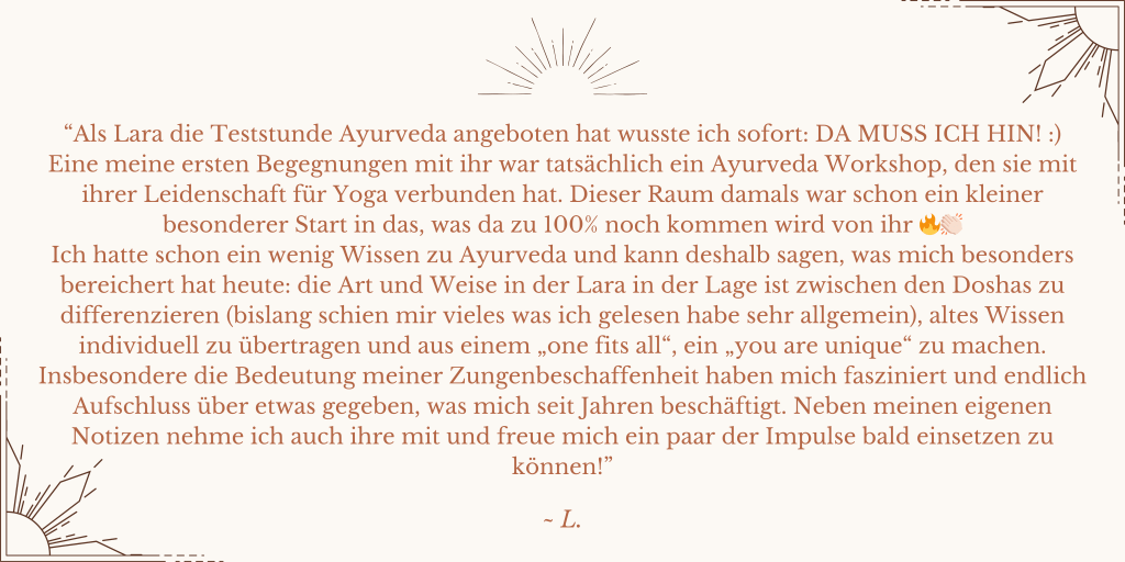 Willkommen bei unserer Ayurveda Basics Beratung, wo wir die Grundlagen dieses jahrtausendealten ganzheitlichen Gesundheitssystems erkunden. Ayurveda, übersetzt als „Wissen vom Leben“, bietet zeitlose Prinzipien und praktische Werkzeuge, um deine Gesundheit zu verbessern, dein Wohlbefinden zu steigern und deine Lebensqualität zu erhöhen.